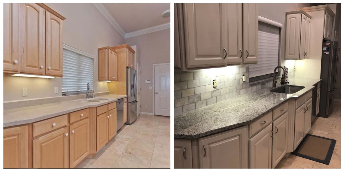 One of the most unique services we offer is customizing cabinet colors. Take a look at these before and after's to witness the incredible transformation of entire kitchens.